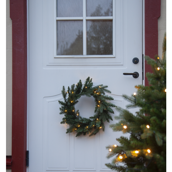 Вінок 45cm шириною з 30 теплими білими лампочками, на батарейках, що світяться у вечірній час.